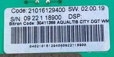 Gruppo comandi (scheda elettronica con display LCD, pannello comandi, supporto interno) per lavatrice Hotpoint Ariston Aqualtis.
