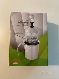Schiumalatte manuale con doppia rete per latte e cappuccini. Nuovo mai usato.