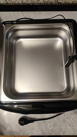 Digital Meltinchoc, scioglitore di cioccolato digitale, è realizzato in materiale plastico termoresistente, con vasca e coperchio rimovibile in acciaio inox e sonda termica per la regolazione della temperatura del cioccolato.La scheda elettronica gestisce la resistenza interna e la rilevazione della temperatura del cioccolato tramite la sonda esterna per ottimizzare il raggiungimento del risultato richiesto e per consentire un più rapido e preciso scioglimento del cioccolato.Il pannello frontale fornisce suggerimenti per il temperaggio, regolabile manualmente o seguendo i 3 programmi differenti in base al tipo di cioccolato: bianco, al latte o fondente.Le indicazioni del display aiutano l’operatore a completare le fasi del temperaggio e del mantenimento del cioccolato.Caratteristiche principali: temperatura costante ed omogenea, vasca estraibile in acciaio inox, programmi selezionabili, rapido scioglimento, controllo digitale, display grafico, sonda termica e indicatori sonori.Capacità: 9 litri.Dimensione vasca: 32 x 35,3 h 10 cm