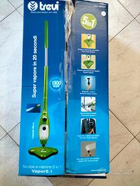 Vendo scopa a vapore 5 in 1 marca Trevi usata qualche volta che funziona come scopa a vapore per pavimenti,pulitore igienizzante per tappeti,tergivetri,vaporizzatore portatile per pulire lavandino,piastrelle,box doccia,ecc.;spazzola a vapore per tessuti, raccogli polvere con panno.
