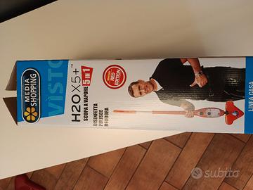PULIZIA NATURALE SENZA CHIMICA: Ottieni un'igiene impeccabile sfruttando solo la potenza del vapore caldo. Questo sistema pulisce a fondo senza l'uso di detergenti aggressivi, rendendolo la scelta ideale, ecologica e sicura per le case con bambini piccoli e animali domestici. SISTEMA 2 IN 1 TRASFORMABILE: Massima versatilità in un unico apparecchio. Si converte in pochi istanti da scopa a vapore verticale per pavimenti a pulitore portatile, permettendoti di igienizzare comodamente sia grandi superfici che angoli difficili da raggiungere in tutta la casa. AZIONE EFFICACE CONTRO I GERMI: Proteggi la tua casa e la tua famiglia ogni giorno. La tecnologia a vapore aiuta a ridurre fino al 99,9% dei comuni germi e batteri domestici, garantendo un'igienizzazione profonda e sicura su tutte le superfici trattate senza fatica aggiuntiva. PRONTO ALL'USO IN 15 SECONDI: Risparmia tempo prezioso grazie al sistema di riscaldamento ultra-rapido. L'H2O X5+ è operativo e pronto in circa 15 secondi, consentendoti di iniziare le pulizie immediatamente senza lunghe attese per un pulito veloce ed efficace. MULTISUPERFICIE CON ACCESSORI INCLUSI: Progettato per pulire pavimenti duri sigillati, rinfrescare tappeti (tramite l'apposita piastra inclusa), e lavare vetri, tessuti, cucina e bagno. La confezione completa include un misurino, una spazzola in nylon e l'accessorio per tappeti.