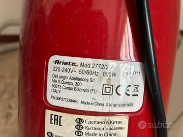 Scopa Elettrica Ariete Evolution 2772/2 - 800W - Tecnologia Ciclonica Vendo scopa elettrica Ariete Evolution (Modello 2772/2), pratica, leggera e potente. Ideale per la pulizia quotidiana di tutti i tipi di pavimento. Caratteristiche principali: • Potenza: 800W per un'aspirazione efficace. • Tecnologia: Ciclonica senza sacco (facile da svuotare e pulire). • Filtro: Dotata di filtro HEPA (ottimo per trattenere polveri sottili e allergeni). • Design: Ergonomico con cavo lungo per una buona libertà di movimento. • Condizioni: Usata ma perfettamente funzionante, come visibile dalle foto.