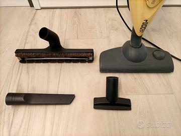 scopa elettrica DELONGHI TABATA PARQUET dotata di accessori (parquet e pavimento normale) e di 8 sacchetti di ricambio. Perfettamente funzionante, solo il manico è leggermente allentato.