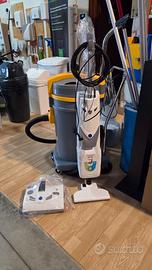 Scopa elettrica multifunzione Professionale. Ideale per ambienti misti, pavimenti, moquette. Motore Rotafil 700w ad alta efficienza Leggera e maneggevole Filtraggio a 6 livelli filtro Hepa Elettrospazzola elettronica per tappeti e moquette presente in foto è un optional da acquistare separatamente Macchina nuova completa di garanzia e fattura