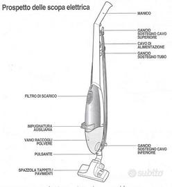 Scopa elettrica Modello SAMSUNG QUIK 1000 W. Completa di sacchetto e filtro , in ottimo stato e perfettamente funzionante, Alimentazione a Filo