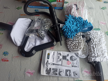 Scopa a Vapore 5 in 1 lava Pavimenti completa di tutti gli accessori e perfettamente funzionante. Usata veramente poco. Pagata 109 euro su media shopping canale italiano visto in tv.