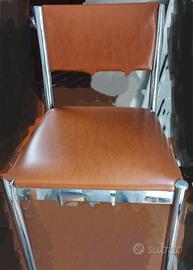 numero 6 Sedie in acciaio cromato seduta imbottita in similpelle finta pelle colore marroncina chiara .