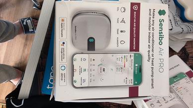 sensibo air pro per automazioni condizionatore o pompa di calore a casa. permette di gestire tramite app Sensibo il climatizzatore di casa per poterlo accendere e spegnere anche quando non si è in casa. ha moltissime funzionalità e misuratore di temperatura, umidità, etc. Solo provato, scatola aperta.