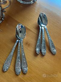 ZUCCHERIERA VINTAGE ANNI '70 ARGENTO 800 E CERAMICA COMPLETA DI 6 TAZZINE , 6 PIATTINI e 6 CUCCHIAINI MOD. DEP. 800 A.B. ITALY FINEMENTE DECORATA