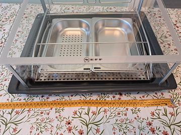 Set cottura a vapore in acciaio inossidabile di qualità eccellente, mai utilizzato. Coperchio in vetro adatto ad alte temperature. Nuovo. Cuoce a vapore a 100 gradi senza pressione.