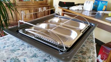 Ti fa trasformare il tuo forno in un forno a vapore. Set per cottura a vapore a 100 gradi, senza pressione. Base forata e struttura con 2 vaschette inox - Coperchio in vetro infrangibile, Misure 47x37 h,18. Adatto a qualsiasi forno. QUALITA' NEFF.