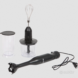 Contiene un frullatore a immersione, un tritacarne, una frusta e una tazza per mescolare.