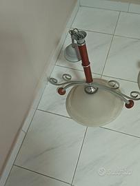 Set di lampadari in legno con coppe in vetro murano completi di lampade