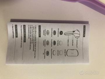 Vendo per acquisto errato, usata solo la testina in pietra pomice un paio di volte, ottime condizioni, perfettamente funzionante. Il manuale istruzioni è in inglese, ma non serve visto che l'unica cosa da fare è inserire le pile nella spazzola, cosa molto intuitiva.