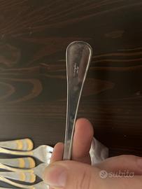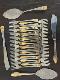 ✔ 23 forchettine da dessert o frutta con dettagli dorati ✔ 2 palette/torte silverplated ✔ 2 coltelli silverplated ✔ 1 cucchiaio silverplated