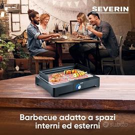 Informazioni su questo articolo Plug-and-Grill – Il barbecue elettrico da balcone dalla superficie di cottura di 1150 cm2 garantisce un avvio rapido e un breve tempo di riscaldamento all'aperto o in casa Termostato regolabile – Il grill elettrico ha un regolatore della temperatura in continuo, con LED che da rosso diventa blu quando viene raggiunta la temperatura Cottura ottimale – La piastra grill da 2200 W ha una griglia per ogni esigenza di cottura e un design modulare con componenti rimovibili per una pulizia semplice Sicuro e senza fumo – Il grill da balcone è dotato di una vaschetta per l'acqua che minimizza la formazione di fumo e il sistema SafeTouch che elimina il rischio di bruciature Dettagli prodotto – SEVERIN barbecue da balcone con protezione antivento smontabile per la pulizia, con regolatore della temperatura a LED, in acciaio inossidabile, 2.200 W, articolo numero PG 8565
