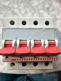sezionatore modulare BTicino F74/100N. Marca: BTicino Modello: F74/100N Corrente nominale: 100A Tensione: 400V~ 50Hz Poli: 4P (quadripolare)