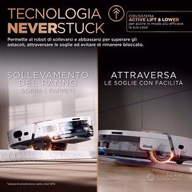 TECNOLOGIA NEVERSTUCK: Il robot si alza e si abbassa automaticamente per superare gli ostacoli, attraversare le soglie ed evitare di rimanere bloccato