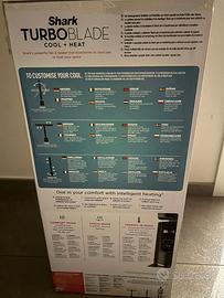 INCLUDE: Base TurboBlade Raffreddamento + Riscaldamento, 2 pale, asta, piastra base, telecomando e 2 batterie. Dimensioni: 116,68 x 34,97 x 29,9 cm (A x L x P). Peso: 9,2 kg. Colore: grigio antracite/oro.