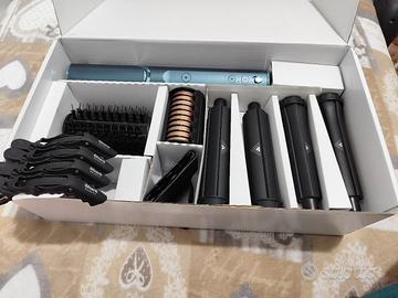 Sharkflexstyle Styler e asciugacapelli 5 in 1. Senza danni da calore. Il set include: - Sharkflexstyle - accessorio FrizzFighter - 4 cilindri arricciacapelli (34 e 24 mm) - spazzola ovale - concentratore - pinze a coccodrillo - custodia