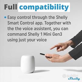 Shelly 1 Mini Gen 3 è un relè smart switch Wi-Fi e Bluetooth, 1 canale 8 A, dotato di un nuovo processore e di più memoria flash – ESP Shelly e di una maggiore durabilità dei terminali, viene utilizzato anche come extender di portata Wi-Fi, contatti secchi, supporta fino a 8 A a 240 V AC e 5 A a 30 V DC. Automatizza le tue luci, i cancelli del garage, i sistemi di irrigazione o altri piccoli dispositivi elettronici in meno di 10 minuti e controllali da qualsiasi luogo CONTROLLA LA TUA PORTA DEL GARAGE – Il design compatto del Shelly Plus 1 Mini consente un posizionamento flessibile, permettendoti di installarlo direttamente nell'alloggiamento dell'apriporta del garage o persino vicino al motore. La sua capacità di carico di 8 A garantisce un controllo affidabile del cancello del garage, permettendoti di azionare comodamente il tuo cancello del garage da remoto, senza la necessità di ingombranti moduli esterni. AUTOMATIZZA IL TUO SISTEMA DI IRRIGAZIONE IN BASE AL METEO – Il Shelly Plus 1 Mini, grazie alle sue dimensioni ridotte, può essere installato vicino al pannello di controllo del sistema di irrigazione o in un involucro impermeabile, offrendo così protezione dagli agenti atmosferici.
