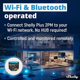 Shelly Plus 2PM è un interruttore a relè intelligente con 2 canali, fino a 16 A (max 18 A), e due misuratori di consumo; Può funzionare in due modalità: modalità relè e modalità motorizzazione tapparelle; Traccia i consumi e controlla qualsiasi elettrodomestico e circuito elettrico, oppure automatizza tapparelle, tende, porte con un solo clic Controllo di due elettrodomestici con un unico dispositivo: Shelly Plus 2PM consente di controllare due circuiti diversi e di monitorarne il consumo separatamente; In questo modo, è possibile controllare due luci diverse sulla stessa fase, risparmiando energia e riducendo l'uso dei cavi Automatizzate le vostre tende o tapparelle: In modalità tapparella, Shelly Plus 2M è in grado di automatizzare tende, tapparelle, veneziane, porte di garage e qualsiasi altro motore bidirezionale presente in casa; Utilizzate la funzione di orario personalizzato per creare routine ottimali mattina/sera e impostate Shelly Plus 2PM per aprire/chiudere le tende a orari predefiniti
