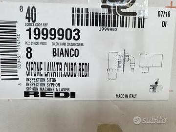 Sifone lavatrice Cubo Redi bianco interamente estraibile, totale ispezionabilità.