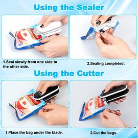 【Compatto Portatile】Questo sigillante per sacchetti è solo 10 * 4 * 3,5 cm, facile da trasportare e può essere comodamente riposto in una tasca o in una borsa. Mini sigillatrice: sia in campeggio che a casa, è possibile utilizzarla per sigillare e tagliare facilmente.
