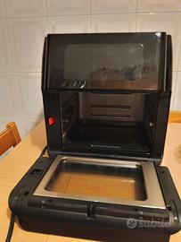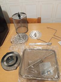 Friggere, grigliare, cuocere al forno, gratinare, tostare, riscaldare, cucinare ed essiccare. display Easy Touch intuitivo con 9 programmi preimpostati. include:3x piastra per cottura e asciugatura (vassoio con griglia) 1 cestello rotante rotondo. temperatura: regolabile da 40°C a 200°C . Timer: impostabile da 1 a 60 minuti. Potenza: 1800W Capacità :10 litri, Cestello rotante – circa 1,9 litri Lunghezza del cavo: 100 cm Dimensioni: circa 34 x 37 x 38 cm (L x A x P)