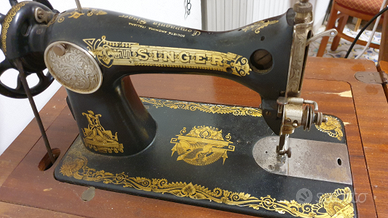Macchina da cucire Marca singer Funzionamento manuale Il funzionamento della macchina é a pedale Il mobile è originale ma nel tempo si sta danneggiando lateralmente É stata utilizzata fino alla metà del 2024