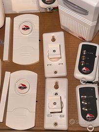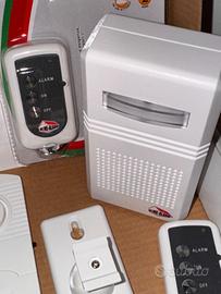 Vendo sistema di allarme Wireless composto da centralina con sirena, 2 sensori di movimento ad infrarossi con relativi supporti a parete, 2 contatti magnetici per porta/finestra e 4 telecomandi di cui 2 ancora sigillati.