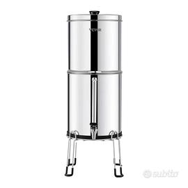 • Venditori Affidabili di Esperienza • Spediamo ovunque, anche in Contrassegno • Vendiamo solo articoli Nuovi di prima qualità • Contattaci per qualsiasi info necessaria Filtraggio efficiente: il sistema di filtraggio dell'acqua a gravità utilizza carbone attivo + membrana filtrante in ceramica come mezzo filtrante, rimuove il 99% del cloro dall'acqua e migliora il gusto. Riduce inoltre i metalli pesanti, i sedimenti, la ruggine. Durabilità e resistenza: il contenitore senza giunture realizzato in acciaio inossidabile SUS304 per uso alimentare è robusto e durevole. L'assenza di saldature o perdite nel sistema di filtraggio dell'acqua riduce significativamente il rischio di perdite d'acqua. Conveniente: ogni coppia di filtri in acciaio inossidabile ha una capacità fino a 6.000 galloni. I filtri sono sostituibili e soddisfano i requisiti per l'uso continuo. Grande capacità portatile: la capacità di 2,25 galloni soddisfa il fabbisogno di acqua potabile da 1 a 4 persone. Il filtro per l'acqua da tavola in acciaio inox dal design compatto dimezza il volume di stoccaggio ed è quindi facile da trasportare. Facile installazione e riempimento: il sistema di filtraggio dell'acqua viene fornito con un set completo di accessori che consente una facile installazione senza elettricità. Ha anche un rubinetto visivo migliorato che mostra chiaramente il livello dell'acqua.