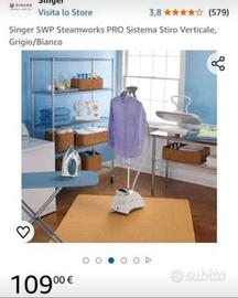 Singer SWP Sistema Stiro Verticale, 1500 W, serbatoio dell'acqua 2.5 l, 90 minuti di autonomia, GriSistema stiro verticale Singergio/Bianco. Funziona bene.