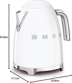 Smeg, Bollitore Elettrico KLF03WHEU 1,7 L, Filtro Anticalcare Lavabile, Autospegnimento di Sicurezza, Indicatore Livello di Acqua, Base Antiscivolo e Avvolgicavo Integrato, Potenza 2400W, Bianco.