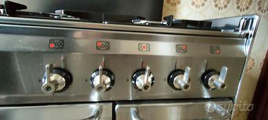 SMEG Cucina a gas 5 fuochi con forno elettrico. Vano laterale per eventuale bombola del gas. Acciaio inox Misure: 130x55xh85 Appartamento al quarto piano. Ritiro a carico dell'acquirente.
