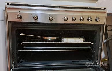 Tipo di prodotto: Cucina, Colore del prodotto: Acciaio inox, Tipo di controllo: Manopola. Tipo di piano cottura: Gas, Numero totale di fuochi: 5 Fornello(i), Numero di fuochi: 5 Fornelli. Dimensione del forno: Largo, Sorgente di alimentazione del forno: Gas, Capacità netta del forno: 115 L. Classe efficienza energetica: A, Consumo energetico (convenzionale): 1,21 kWh, Consumo energetico (convezione forzata): 0,98 kWh. Tecnologie Smeg (cottura): Vapour Clean