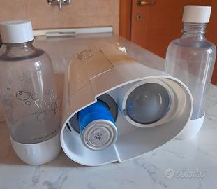 Soda stream colore beige, funzionante, due bottiglie, due tappi e cartuccia (parzialmente utilizzata)