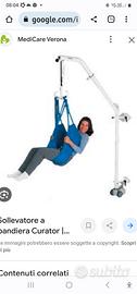 sollevatore a bandiera elettrico curator,portata fino a 140kg,permette di muovere il paziente dal letto alla carrozzina e viceversa,senza sforzo e senza ingombranti macchinari a leva ...usato poco, prezzo nuovo oltre 5000 euro vendo a 2000 poco trattabili...cambia la vita del paziente e di chi lo accudisce...