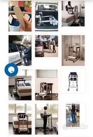 EasyGO è un sollevatore speciale con un sistema di sollevamento del paziente unico nel suo genere. EasyGO è disponibile con un meccanismo elettrico e una batteria ricaricabile. Consente di sollevare il paziente con due soli movimenti e di posizionarlo sul letto, sulla sedia a rotelle, sulla toilette, in auto o in qualsiasi altro luogo desiderato. Il sollevatore EasyGo completo di doppia seduta una liscia rinforzata e una bucata, tutti gli accessori per un perfetto utilizzo e istruzioni d'uso. Usato pochissimo.