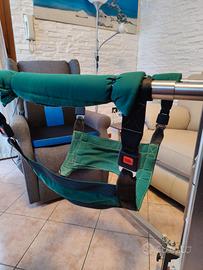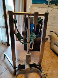 sollevatore ,per trasporto disabiuli/anziani,marca sollievo, molto comodo per appartamenti con poco spazio, gambe apribili,per inserimento in poltrone o doccia,con varie fasce ,con possibilita di poter fare camminare la persona ,sostenuto dalla fascia...molto molto comodo,senza questo nn avrei saputo come fare a gestire mia mamma...