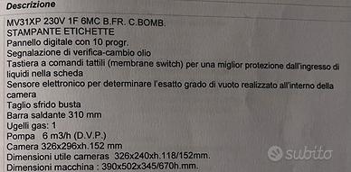Si tratta di una sottovuoto di altissima qualità , come valko e orved, acciaio alto spessore, pompa altissima efficienza.