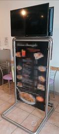 totem pubblicitario in acciaio inox con pannello in dbond con 2 monitor fronte e retro per proiettare video o listino prezzi. altezza con monitor 180 x larghezza 80. i monitor removibili euro 950