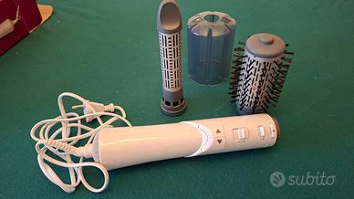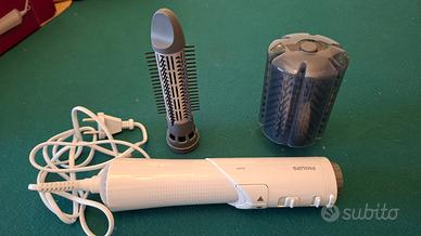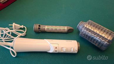 Spazzola volumizzante girevole Philips con 2 accessori a ioni e tormalina. Questo styler ad aria da 1000 W crea un flusso d'aria ottimale e una potenza di asciugatura delicata per risultati splendidi ogni giorno. Il trattamento a base di ioni previene l'effetto crespo e ottimizza la luminosità. Il trattamento agli ioni asciuga i capelli senza che vengano rilasciati ioni negativi, che riducono l'effetto crespo, ammorbidendo i capelli e lisciandoli con la massima lucentezza per capelli splendenti e stupendi, senza effetto crespo. L'esclusivo accessorio rivestito in ceramica e tormalina protegge e rivitalizza i capelli durante lo styling. Questo rivestimento speciale conduce calore in modo efficace e in modo uniforme, aggiungendo lucentezza ad ogni passata. La spazzola termica da 50 mm è il modo perfetto per dare più volume, corpo e lucentezza ai capelli. Utilizzala sui capelli quasi asciutti per creare splendide messe in piega professionali a casa tua. Utilizza la spazzola da 30 mm per aggiungere onde definite, mantenendo i capelli lisci e luminosi. Le setole retrattili rendono più semplice fare messe in piega senza nodi. Puoi ruotare la spazzola in entrambe le direzioni, per gestire e creare più tipi di messe in piega. Le setole della spazzola termica sono in parte realizzate con setole naturali di cinghiale. Questa combinazione di setole fa in modo che la spazzola si muova tra i capelli in modo più agevole, riducendo l'effetto crespo, aumentando la lucentezza e impedendo la formazione di nodi. L'impostazione "Care+" garantisce una temperatura di asciugatura ottimale e previene i danni da surriscaldamento. Per un'asciugatura veloce, con lo stesso potente flusso di aria, ma ad una temperatura costante e delicata sul capello.