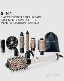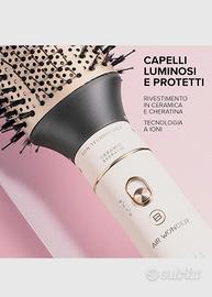 BELLISSIMA IMETEC AIR WONDER, spazzola ad aria calda, tecnologia a IONI. Spazzole rivestite in Ceramica e Cheratina, Asciuga e dona volume. Colore bianco e oro completa di 8 accessori.