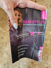 Vendo spazzola modellante per capelli elettrica firmata Delany Beauty. Si tratta di uno styler versatile, ideale per creare volume, lisciare o mettere in piega le punte in modo facile e veloce. Perfetto per il "VIP-look" di tutti i giorni descritto nel manuale. Caratteristiche Principali: Marca: Delany Beauty. Condizioni: Usata ma in ottime condizioni estetiche e perfettamente funzionante. È stata pulita e igienizzata a fondo prima della messa in vendita. Impostazioni: Dispone di tre livelli di temperatura. Incluso nella vendita: La spazzola Delany Beauty Hair Styler come da foto. La sua custodia termica originale (finitura argentata all'interno e bordi fucsia), utilissima per riporla anche quando è ancora calda e per portarla in viaggio. Il manuale di istruzioni originale (multilingua, incluso l'italiano. Un'ottima occasione per avere uno strumento per lo styling completo e ben tenuto a un piccolo prezzo. Disponibile per la spedizione rapida o per ritiro a mano in zona