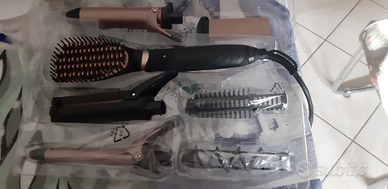 Spazzola elettrica nuovissima con 6 accessori per acconciature super moderne piastra, onde,boccoli larghi e piccoli, ed altri due accessori. Molto resistente nn rovina i capelli una favola che vi farà risparmiare.