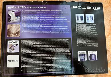 Spazzola rotante 1000W con rivestimento in cheratina e olio di argan che crea lucentezza e con un doppio generatore di ioni che rende i capelli lisci ed ordinati no crespi. La ciocca di capelli si arrotola automaticamente intorno alla spazzola, asciugando i capelli durante la piega. Al interno ci sono due spazzole, una con diametro da 5 cm ed una con diametro da 3 cm. E’ come nuova usata 1/2 volte. Vendo per non utilizzo.
