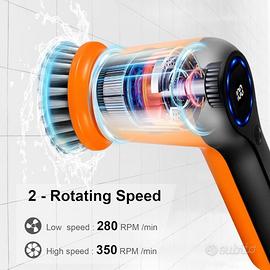 Spazzolina ruotante con batteria ricaricabile che dura fino a 2 ore, impermeabile IPX7.