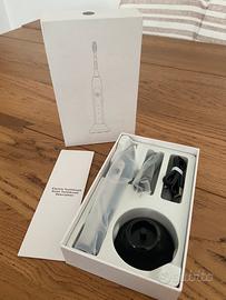 Spazzolino elettivo con base di appoggio e presa Pernricarica. Munito di testina intercambiabile.