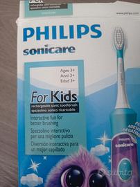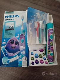 Spazzolino elettrico ricaricabile bambini, usato poche volte, diverse velocità, con decalcomanie originale per decorazioni, completo di 3 spazzolini nuovi.
